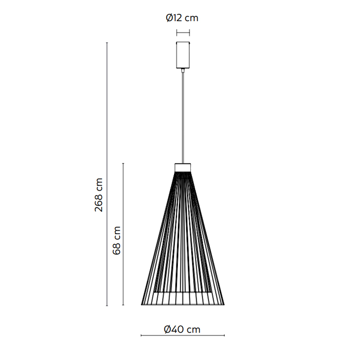 Lámpara suspensión con pantalla de aluminio. Dimensiones:Ø40x68h cm.
