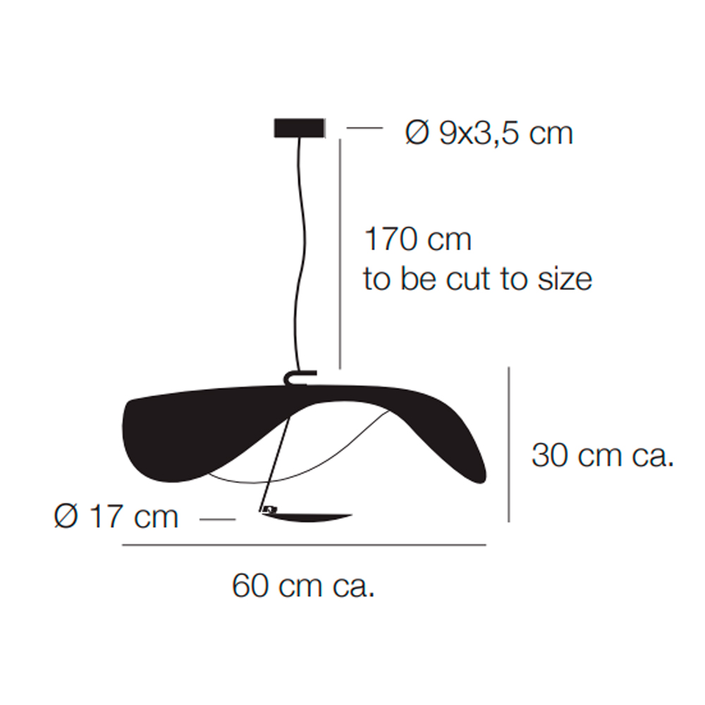 Lámpara colgante y disco de aluminio con varilla y tapón. Diseño de Enzo Catellani.