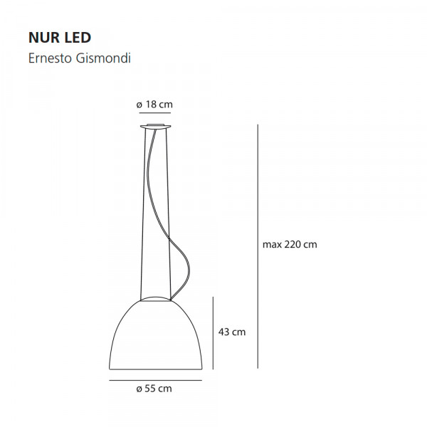 Nur es una lámpara de suspensión con un diseño moderno de Artemide gracias a su cuerpo de aluminio anonizado se transforma en una síntesis geométrica extrema de la óptica por excelencia, manifiesta su presencia a través de un cuerpo monolítico y monomaterial. Una lámpara de suspensión funcional, discreta y, sobre todo, atemporal; encaja tanto en lugares nacionales como públicos. Las líneas esenciales y geométricamente calibradas de una parábola perfecta ocultan un corazón óptico que controla perfectamente la emisión, sin ofender la visión directa. Garantiza una iluminación ambiental general gracias también a las emisiones indirectas.