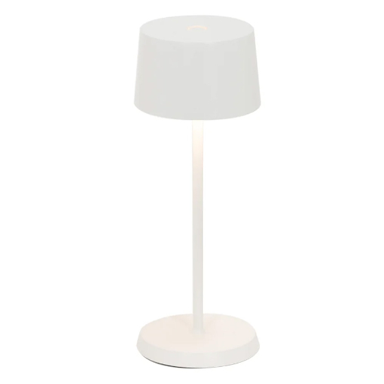 La lámpara de sobremesa Olivia Micro de Zafferano es portátil, recargable y funciona con batería. Incorpora un control táctil en la parte superior que permite encenderla, ajustar la intensidad de la luz y elegir entre tres temperaturas de color: 2200 K, 2700 K y 3000 K.