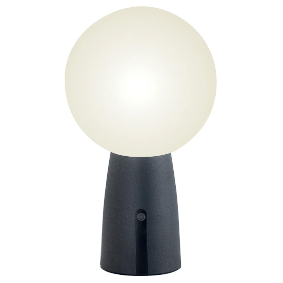 Lámpara de sobremesa outdoor con esfera de vidrio. Dimensiones: Ø15x26h cm.