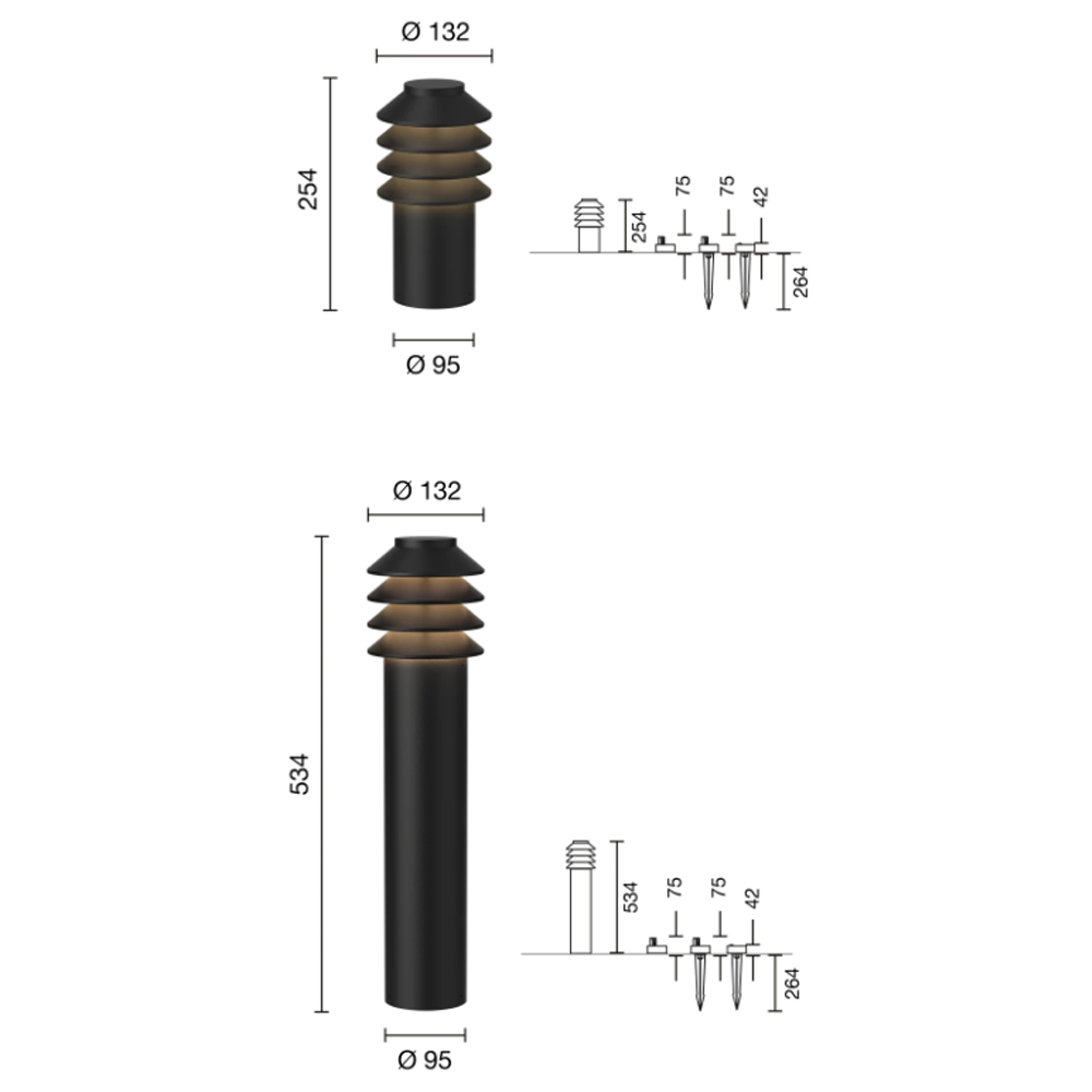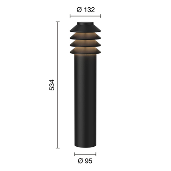 Bysted Garden forma parte de la familia Bysted, diseñada por Peter Bysted en 1975. Su diseño se caracteriza por las pantallas que crean un patrón en el suelo. Esta versión más pequeña del bolardo original se ha perfeccionado para una instalación sencilla, mejorando la calidad de la iluminación en espacios exteriores, ya sean comerciales o residenciales. El concepto del diseño se mantiene, con cuatro anillos que dirigen la luz hacia abajo y aportan singularidad y carácter, además de brillar por la noche.