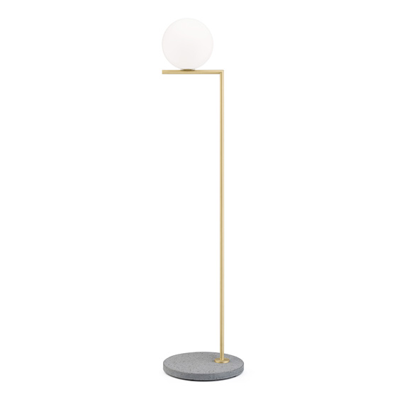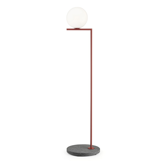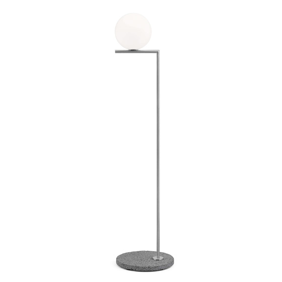 Lámpara de pie exterior de aluminio y base de piedra natural. Diseño por Michael Anastassiades.
