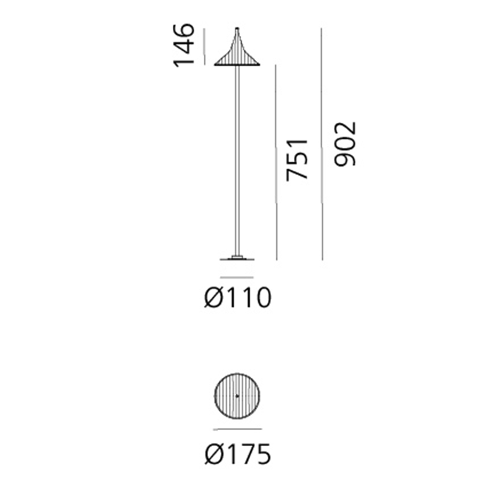 El característico cabezal de aluminio de la familia de lámparas de interior Unterlinden ahora está disponible en una versión con un diámetro de 17 cm en lugar de 11 cm, para obtener un rendimiento lumínico superior y dar lugar a una versión perfecta también para exteriores.