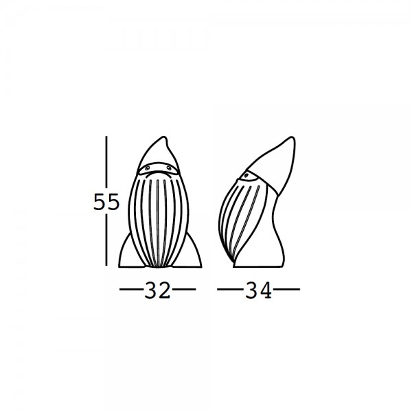 Escultura en polietileno con luz inspirada en un Gnomo. Dimensiones: 34x32x55h cm.