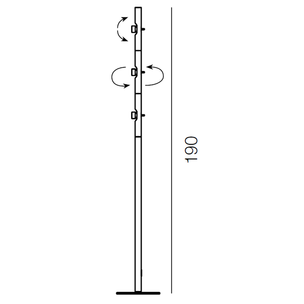 Lámpara de pie con tres cabezales ajustables. Dimensiones: Ø4,5x190h cm.