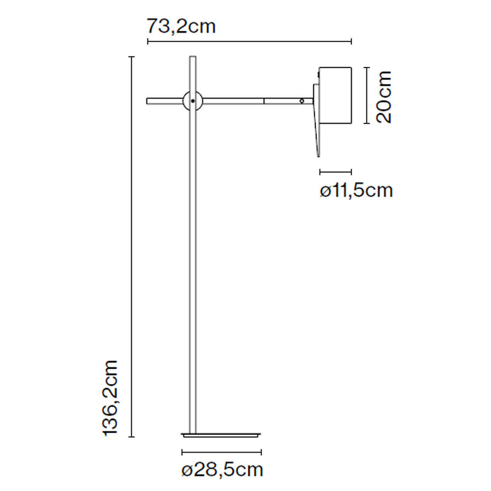 Lámpara de pie con base de hierro lacado y brazo de roble. Dimensiones: 28,5x73,2x136,2h cm.