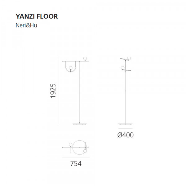 Lámpara pie acero, latón y difusores vidrio soplado. Dimensiones: 75,4x40x192,5h cm.