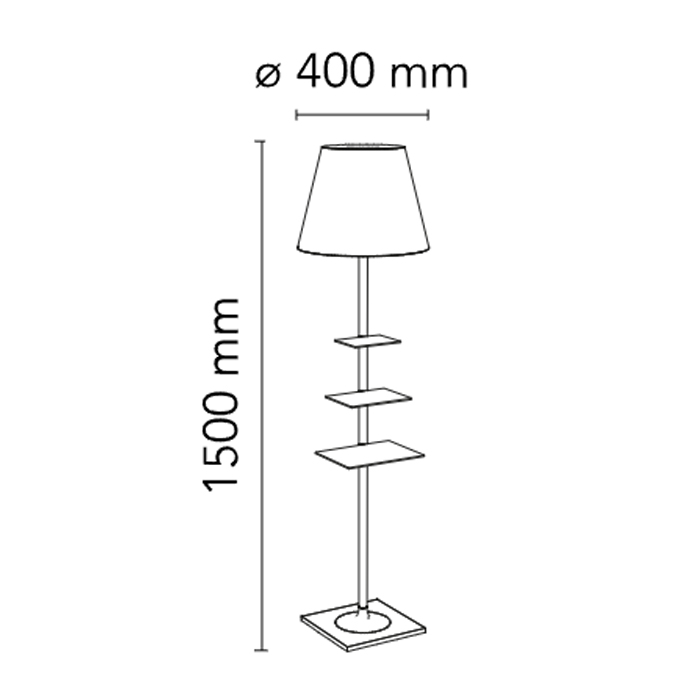 Lámpara de pie con luz difusa. Base, soporte del vástago y soporte del difusor en zinc cromado fundido a presión. Cubierta de la base en chapa de acero P04 galvanizado.