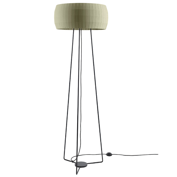Lámpara de pie metálica en negro con pantalla encintada. Dimensiones: Ø53x160h cm