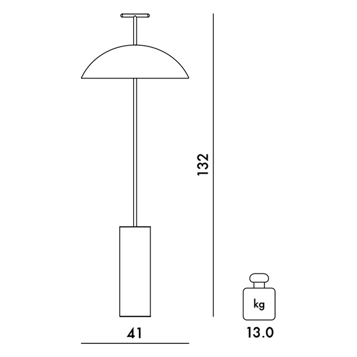 Lámpara de pie de acero pintado en polvo de poliéster. Dimensiones: Ø41x132h cm.