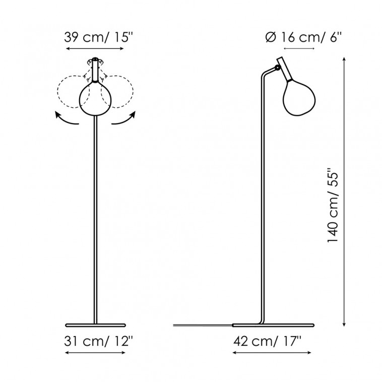 Lámpara al suelo en base de metal con esfera de vidrio soplado.