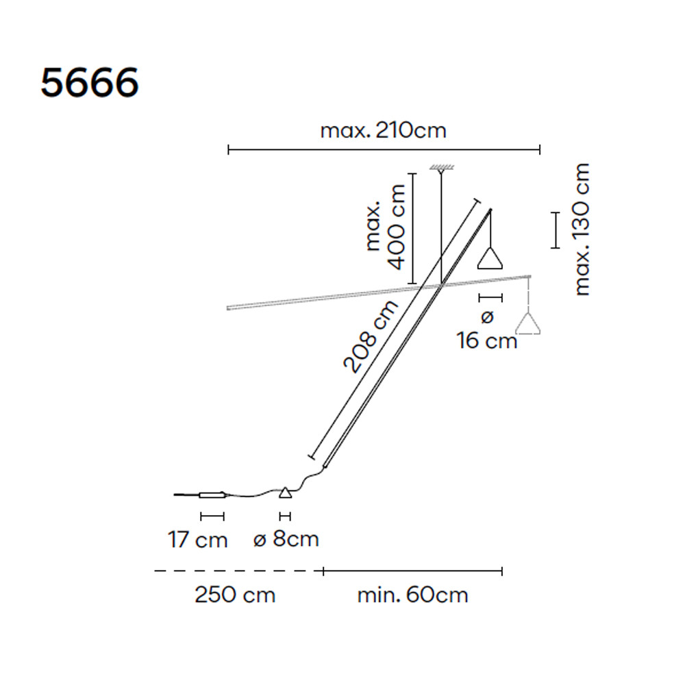 Lámpara de pie ángulo ajustable con un brazo. Dimensiones: 210x130h cm .máx