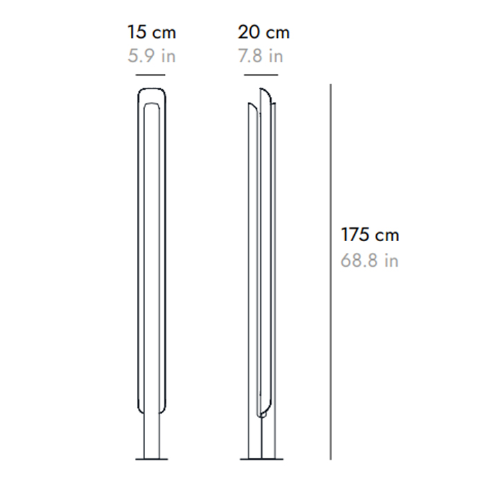 Lámpara de pie LED con pantalla de aluminio. Dimensiones: 15x20x175h cm.