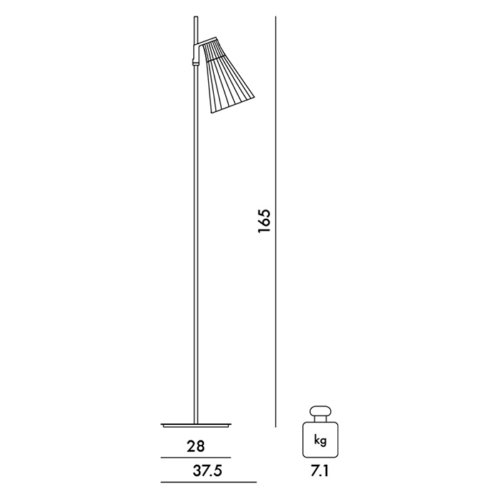 Lámpara de pie de acero y difusor de PMMA transparente. Dimensiones: 28x37,5x165h cm.
