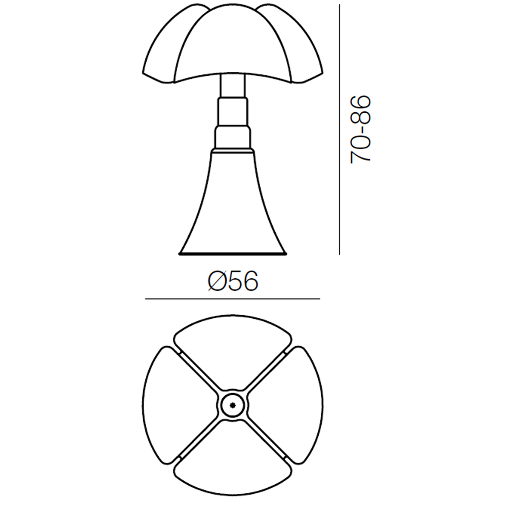 La Pipistrello es una lámpara que se ha convertido en un icono del diseño. Sus alas, capturadas en el momento justo antes de abrirse por completo, simbolizan modernidad, humor, gracia y dinamismo. Con su difusor y base telescópica de líneas sinuosas, combina elegancia y movimiento en una pieza única que desafía el paso del tiempo.
