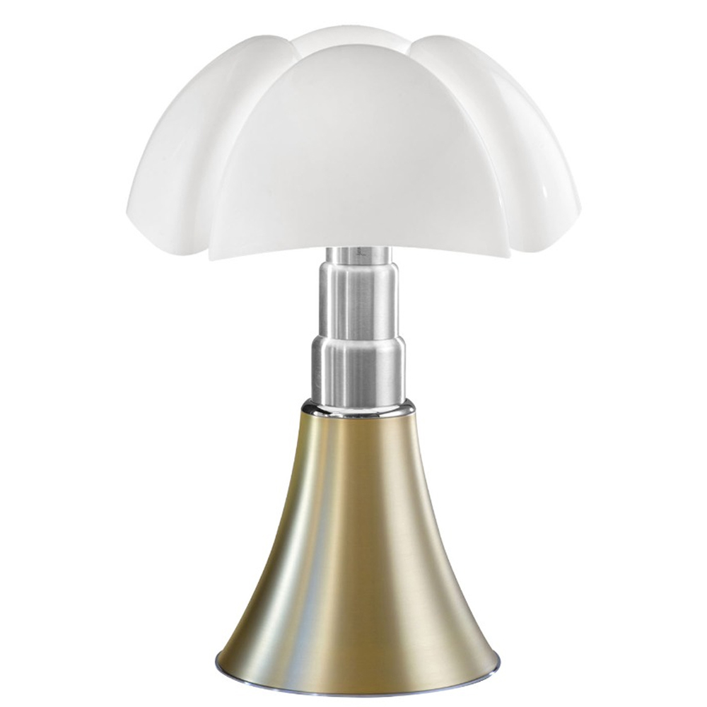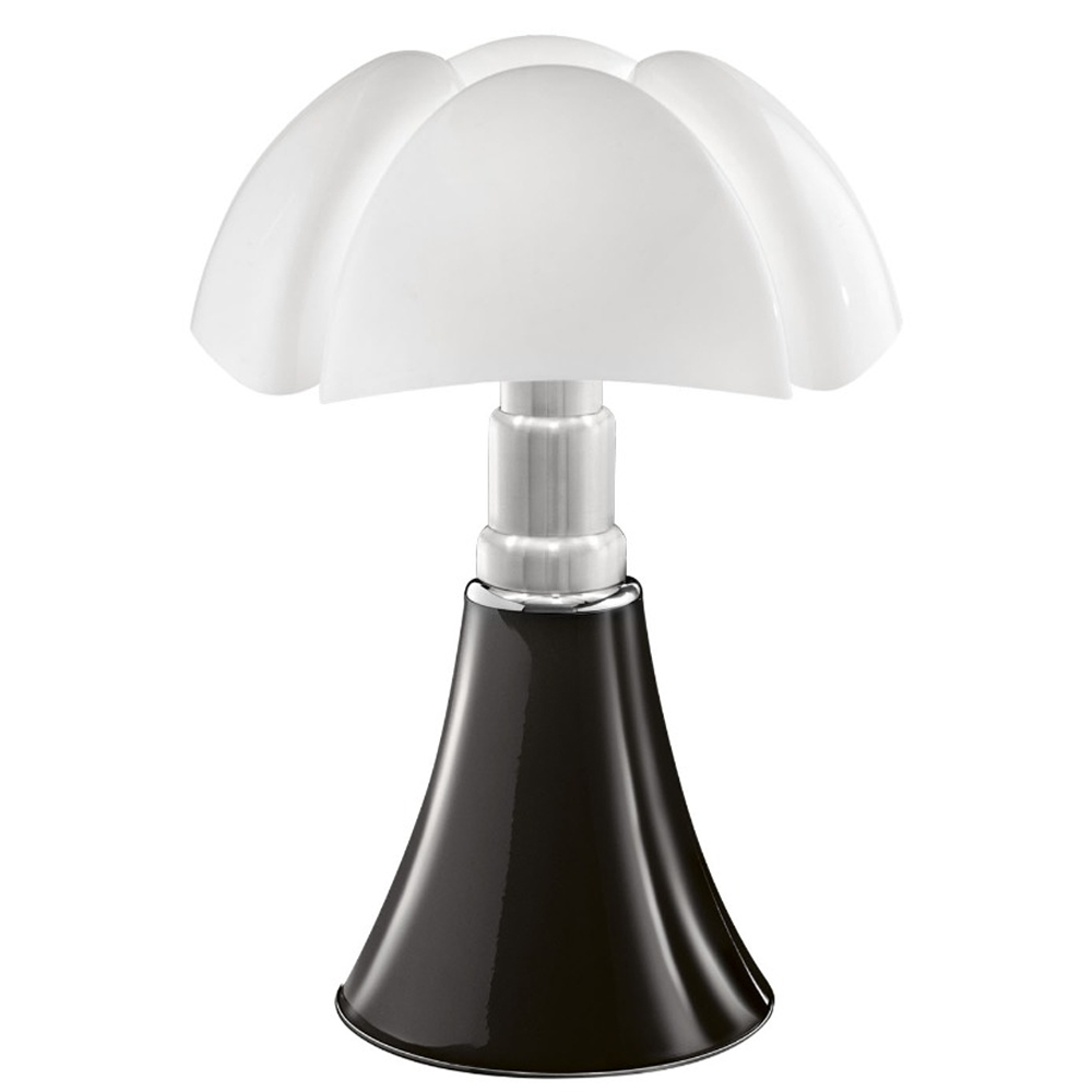Diseñada en 1965 por Gae Aulenti para Martinelli Luce, la Pipistrello utiliza técnicas innovadoras de moldeo del difusor en metacrilato. Su base cónica se expande hacia arriba, imitando el despliegue de las alas de un murciélago. Ya sea sobre una mesa o en el suelo, esta lámpara añade un toque distintivo y expresivo a cualquier espacio.