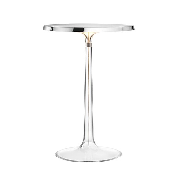 Este diseño de Pilippe Starck cuenta con un tallo transparente por donde se vislumbra el cable interno de manera sutil como un filamento.