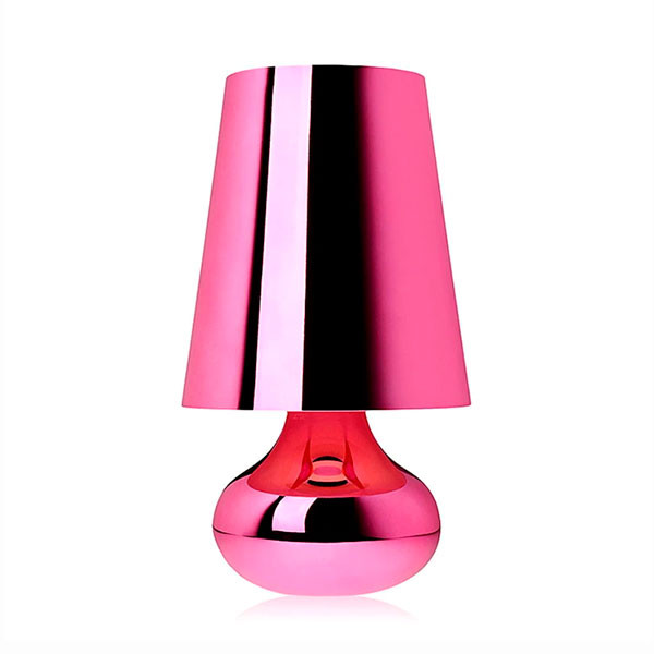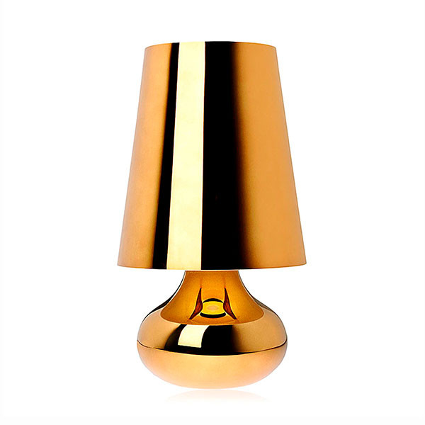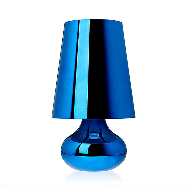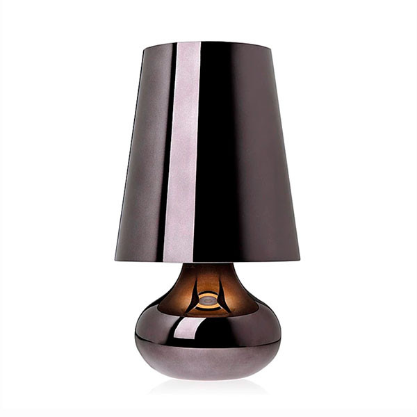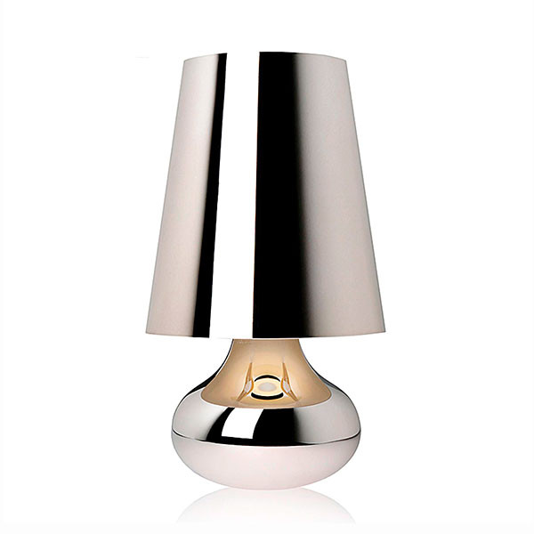 La típica lámpara de mesa de los a–os setenta, revisada en cuanto a la forma y los colores. La lámpara Cindy, que se compone de una pantalla cónica y una base esférica, que baja en forma de gota, se propone en una amplia gama de tonalidades metalizadas opacas.