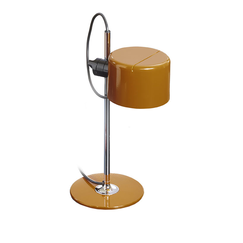 La lampara de mesa mini Coupé nació en 1967 de una intuición de Joe Colombo que inicialmente la concibió como una variante de la lámpara Calotta, ya en la colección de la compañía. A partir de estos signos gráficos y esenciales - la base, el pie y el casquillo ajustable para actuar como pantalla - el diseñador dio vida a una de las familias más famosas de Oluce .