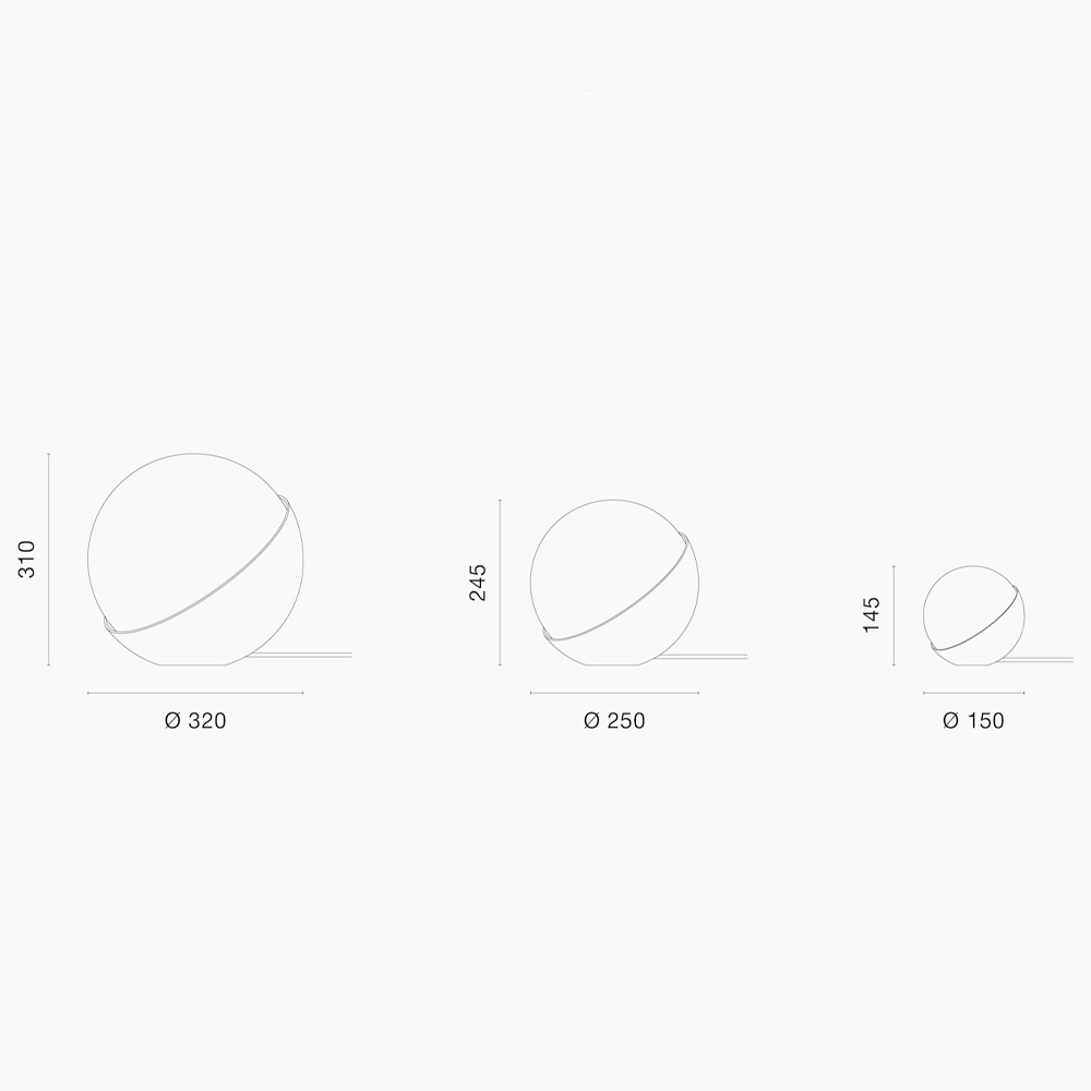 Lámpara sobremesa/pie esférica de vidrio y aluminio. Diseño por Vilhelm Lauritzen.
