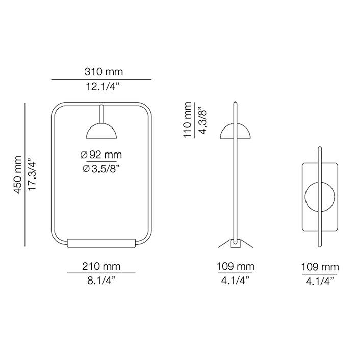 Lámpara de mesa con cuerpo metálico rectangular de bordes suaves, cabezal de cúpula de aluminio, difusor de lente acrílica y LED integrado. Interruptor de encendido/apagado mediante cable.