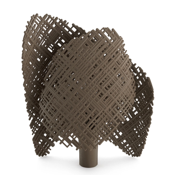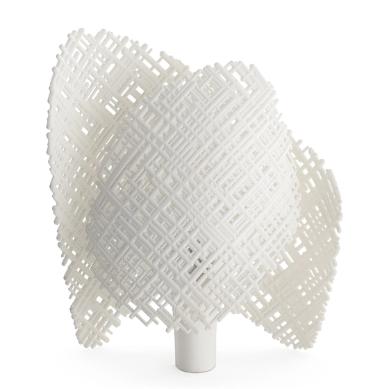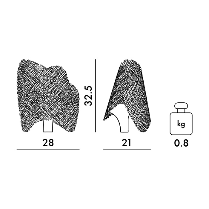 TEA es un signo abstracto, un objeto con una impresión casi artesanal que parece representar dos manos que sostienen la luz en sus palmas, dejándola escapar a través de las tramas irregulares que la definen en un juego de luces y sombras, como las sombras proyectadas en la pared. Es especialmente innovador el tacto irregular y poroso elegido para su acabado extremadamente natural, similar a la terracota y al bizcocho, con una gama cromática básica que resalta cómo, incluso a partir del reciclaje de otros materiales, se pueden crear objetos de gran calidad y poesía. TEA está hecha de termoplástico reciclado y está disponible en los colores blanco, antracita, terracota y tortora.