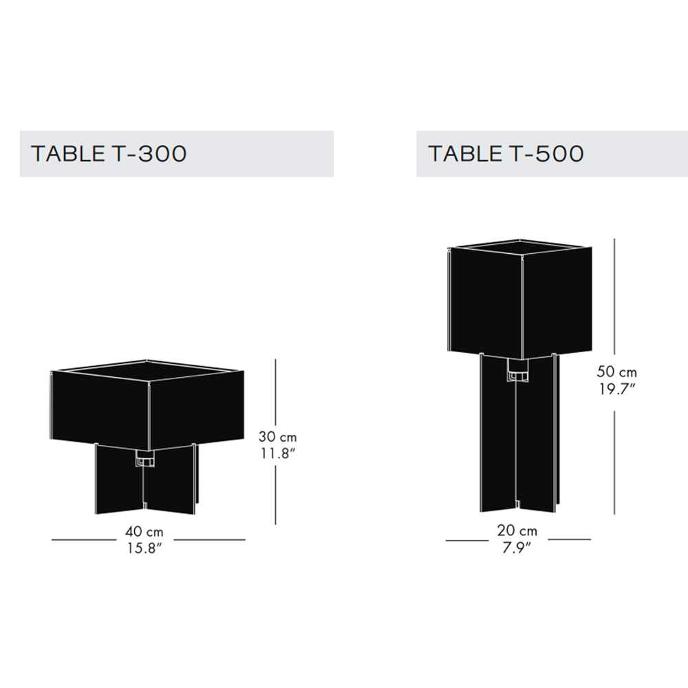 La lámpara T-300, de cuidadas proporciones, tiene una forma cúbica.