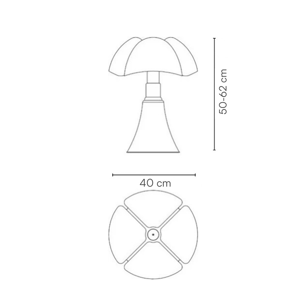 Lámpara de sobremesa regulable en altura con dimmer incluido. Dimensiones: Ø40x50-62h cm.