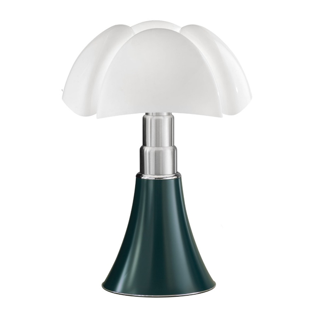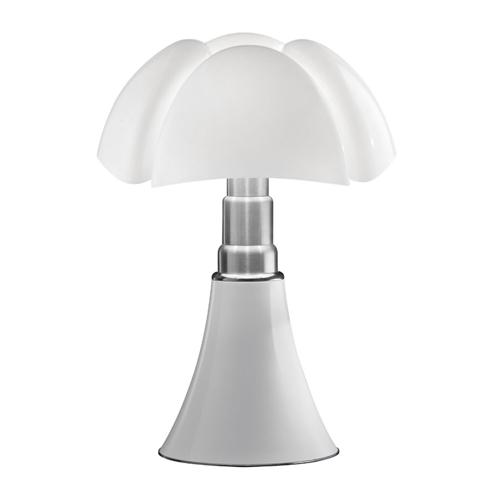 Esta lámpara de mesa ofrece luz difusa y es ajustable en altura. Cuenta con un telescopio de acero inoxidable satinado y un difusor de metacrilato opal blanco. Su estructura y pomo están pintados en aluminio. Incluye una fuente de luz LED integrada y dimmer. Además, viene con un alimentador electrónico a enchufe.