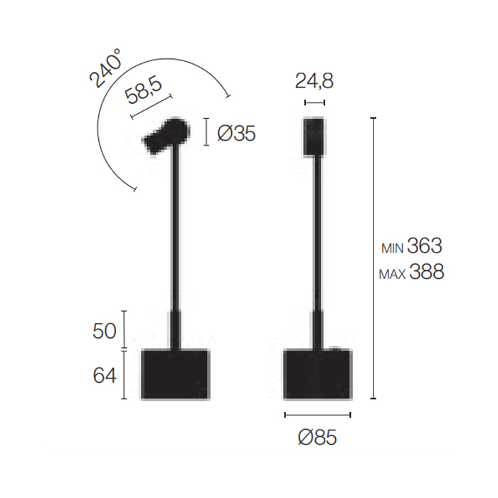 Lámpara de sobremesa con un cabezal movible. Dimensiones: Ø8,5x36,3/38,8h cm.