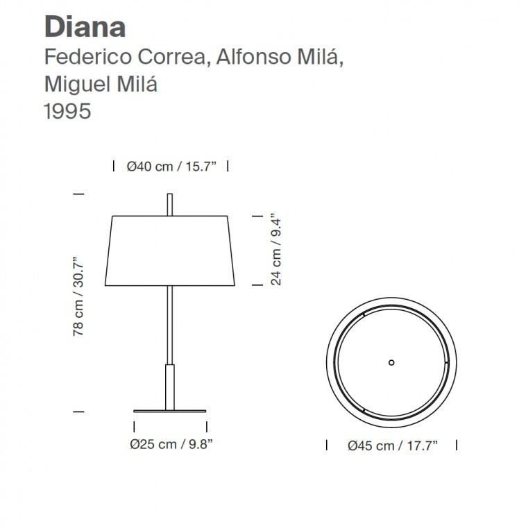 La lámpara elegante de sobremesa Diana 1995 de Santa&Cole es un compendio de sobriedad funcional y compositiva.