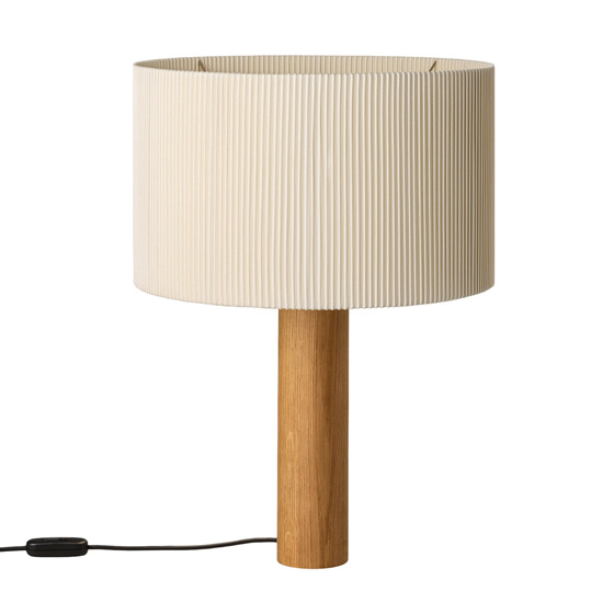 Lámpara de sobremesa de madera y pantalla de cinta. Dimensiones: Ø45x62h cm
