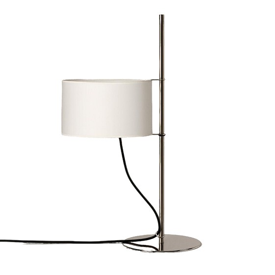 Sobre la base de su famosa lámpara de pie TMM, Miguel Milá diseñó esta versión de mesa sustituyendo la madera con el metal e incorporando un eje cilíndrico.