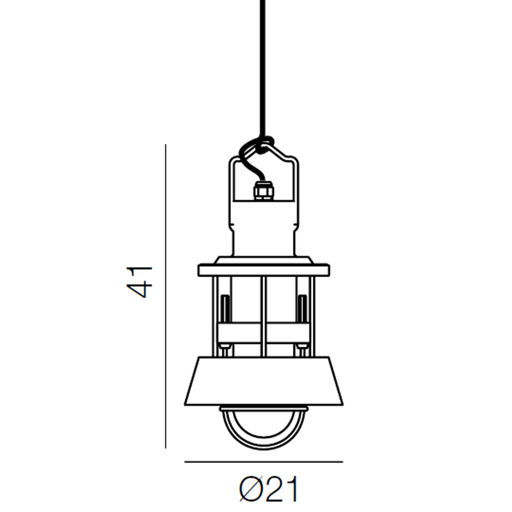 Lámpara de suspensión con estructura en resina y aluminio pintado, difusor de vidrio esmerilado y rejilla de acero inoxidable, es una gran opción para tu jardin.