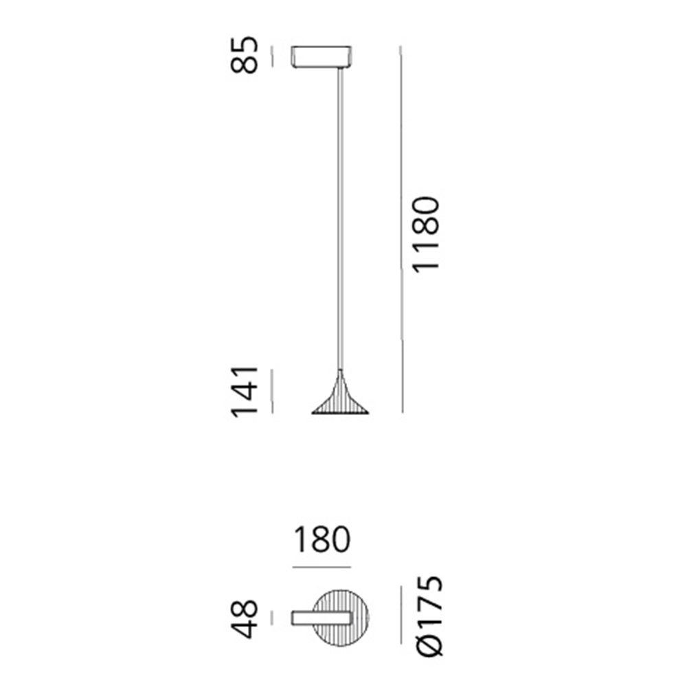El característico cabezal de aluminio de la familia de lámparas de interior Unterlinden ahora está disponible en una versión con un diámetro de 17 cm en lugar de 11 cm, para obtener un rendimiento lumínico superior y dar lugar a una versión perfecta también para exteriores.