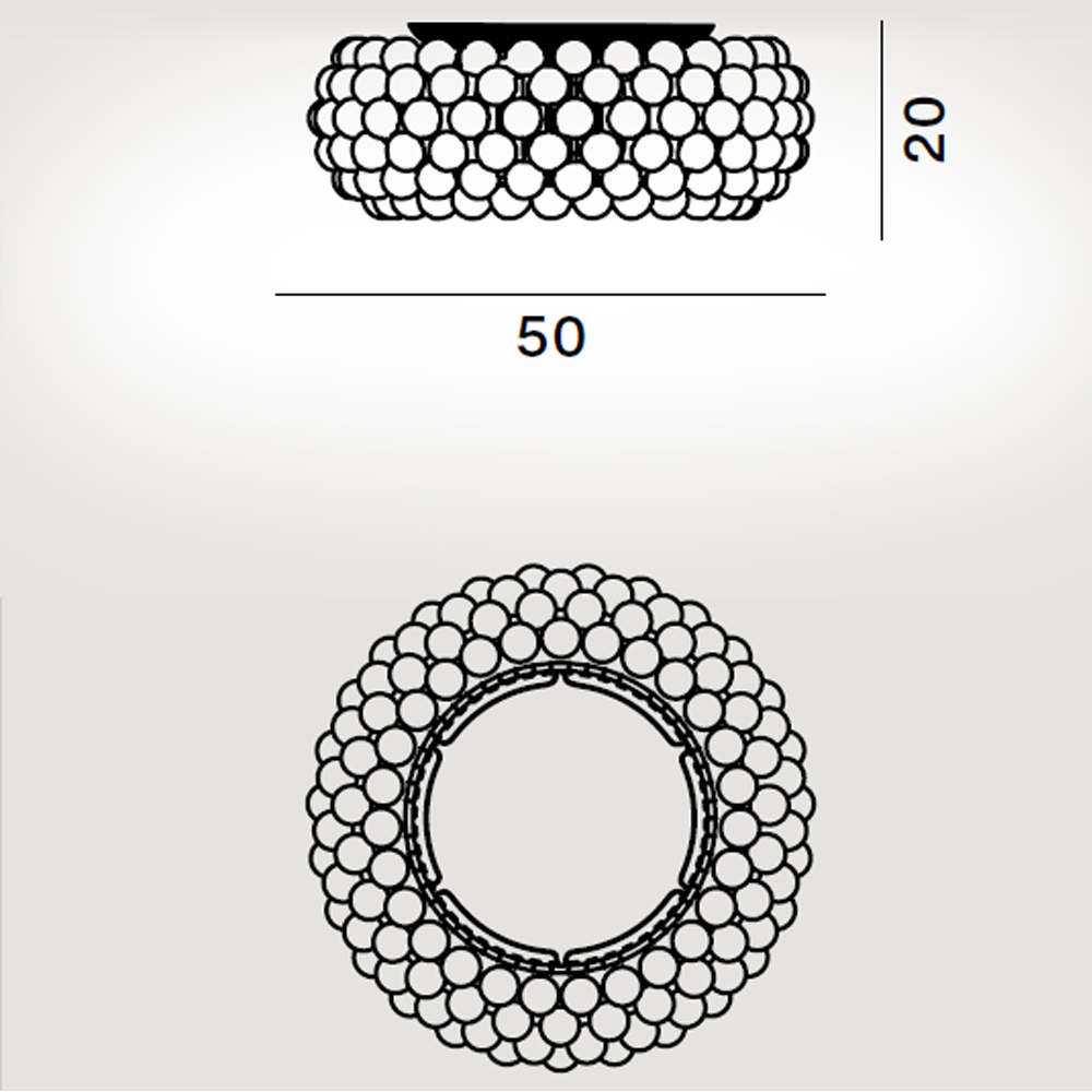 Como una pulsera de esferas transparentes y relucientes, la lámpara de techo Caboche Plus decora y embellece cualquier espacio, con su diseño elegante e ingenioso se crea un extraordinario efecto que refleja la luz desde dentro del difusor central, creando intersante juegos de sombras en el techo.