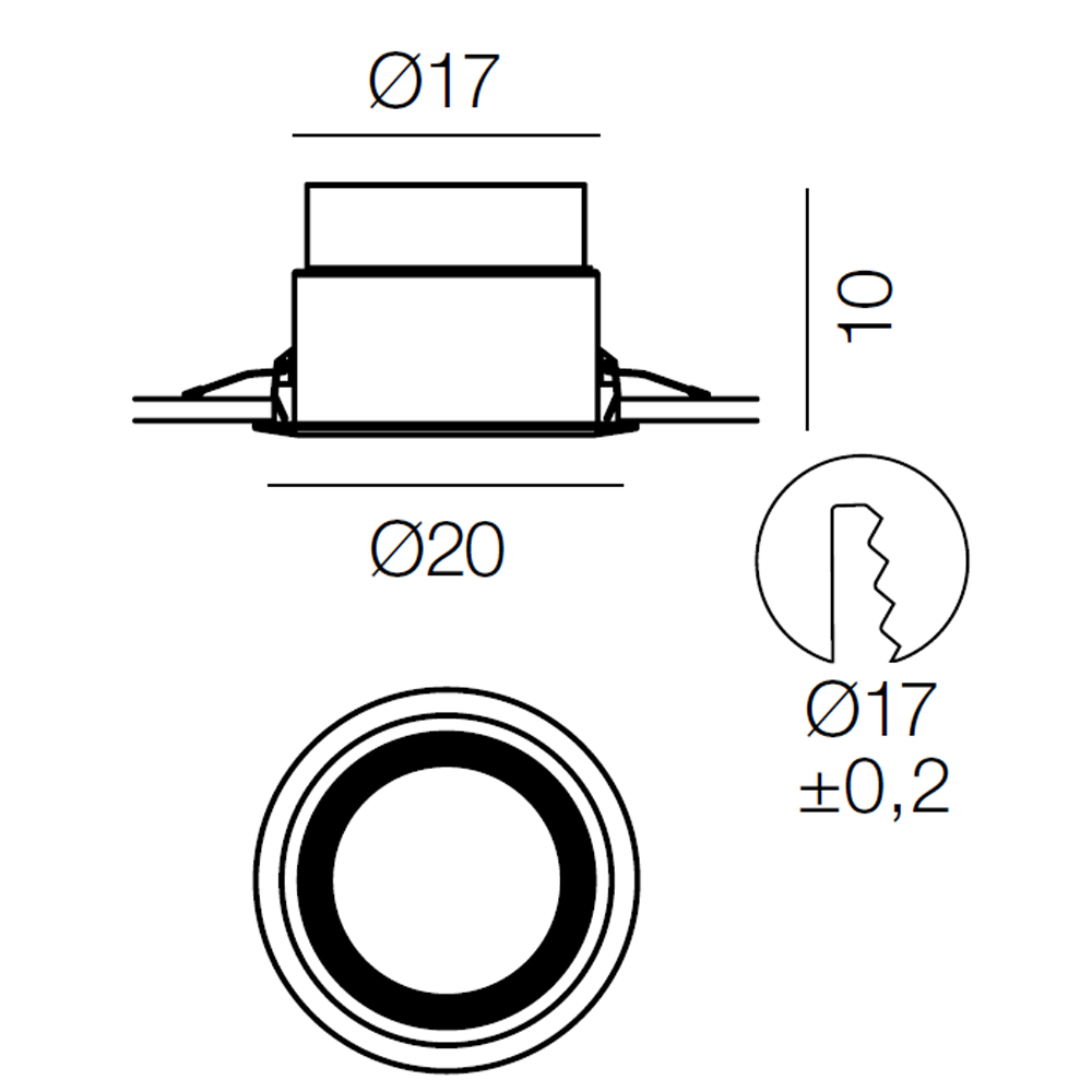 Lámpara techo empotrable con estructura de Aluminio. Dimensiones: Ø20x10h cm.