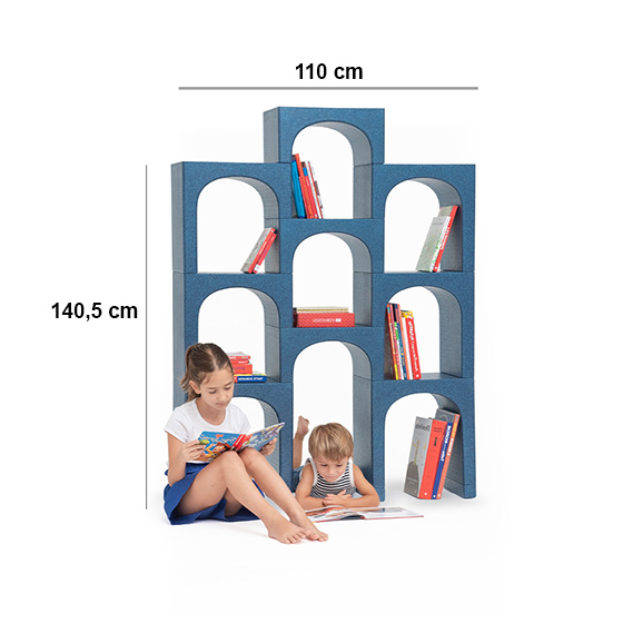 La librería modular Eur del fabricante italiano Magis tiene un moderno y creativo diseño donde sus diversos elementos de unen y se apilan para crear un estantería soportada por una serie de arcos superpuestos que permiten expandir la librería tanto hacia arriba como hacia los lados, generando una infinita cantidad de opciones.