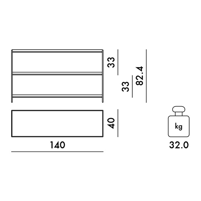 Estantería en acero y estantes de PMMA. Dimensiones: 140x40x82,4h cm.