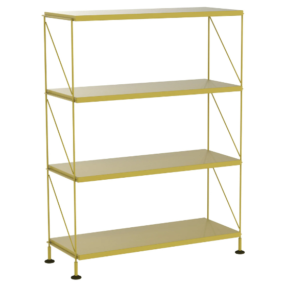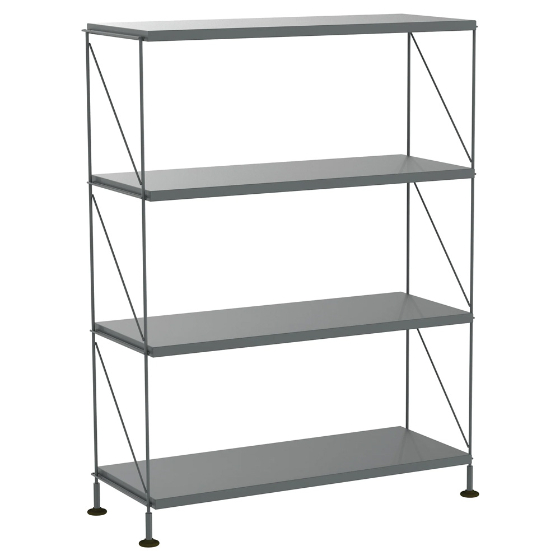 Estantería de pie con sujeción a pared y cuatro estantes de acero.