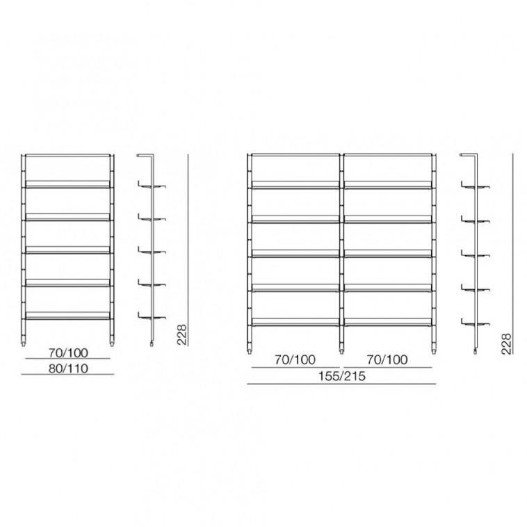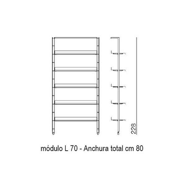• 80x35x228h cm. 1 Módulo L 70 cm.
