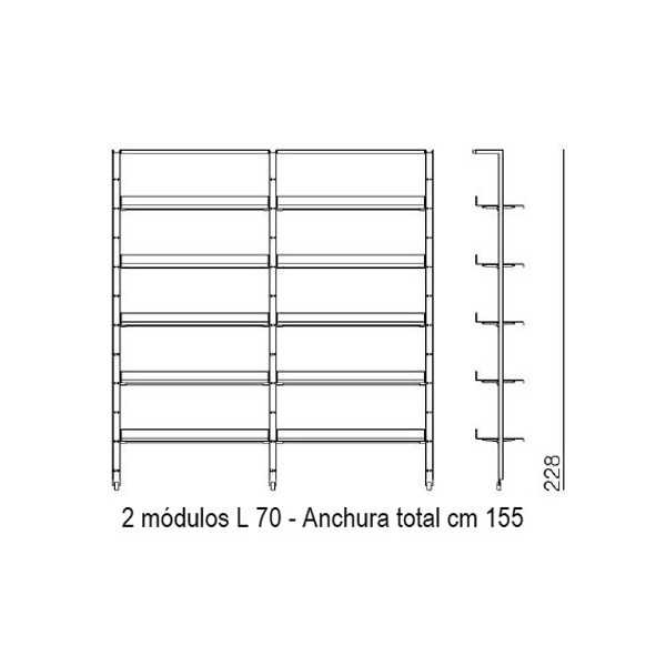 • 155x35x228h cm. 2 módulos L 70 cm.