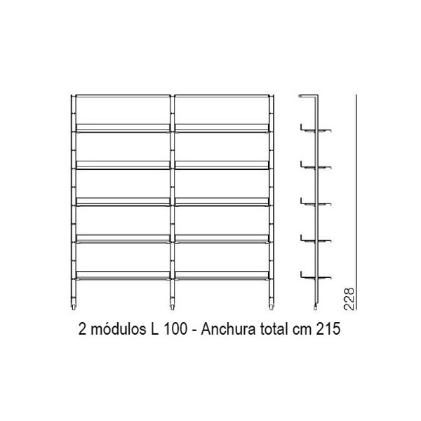 • 215x35x228h cm. 2 módulos L 100 cm.