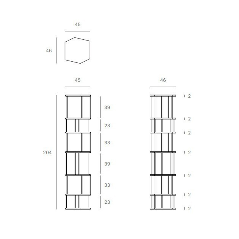 Estantería de madera de roble aceitado o teca color marrón. Dimensiones: 45x46x204h cm