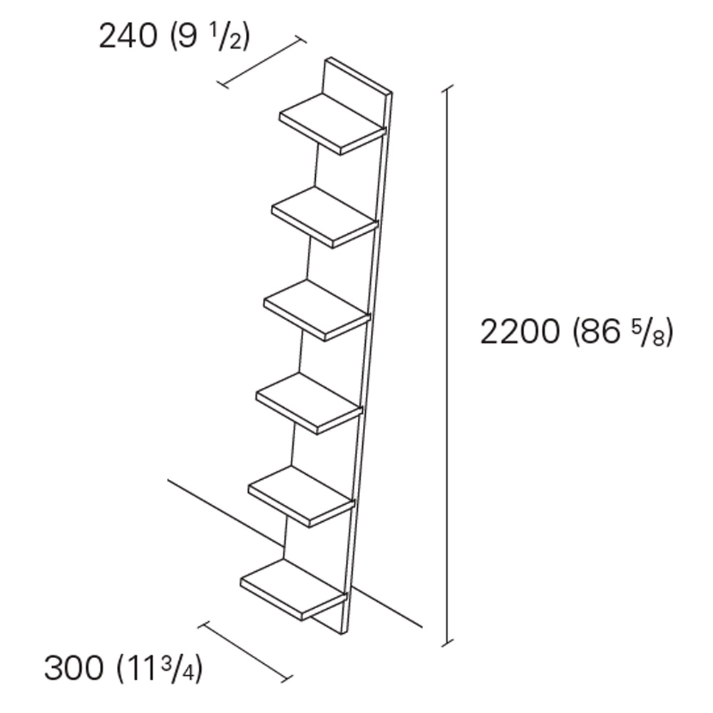 El distintivo estante de madera maciza Mate se apoya contra la pared, expresando un enfoque informal. Los estantes están fijados al tablero por medio de una junta de cola de milano clásica; este detalle tradicional le da a la unidad la estabilidad necesaria mientras refleja una solución global moderna para estantería.