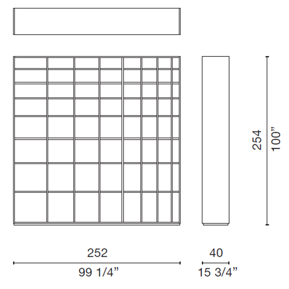Librería lacada de doble cara. Dimensiones: 252x40x254h cm.