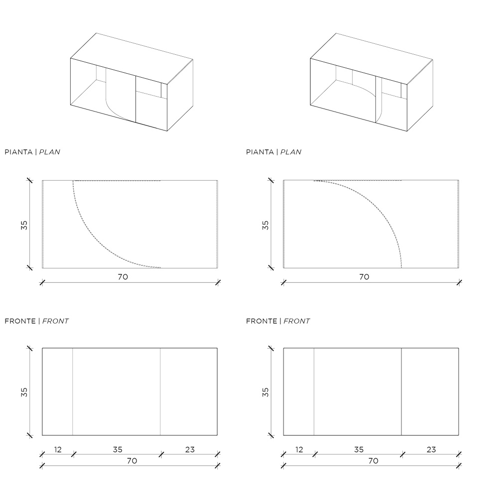 Los módulos se pueden colocar uno al lado del otro creando infinitas composiciones adaptándose a cualquier espacio y necesidad, en la versión de suelo se puede utilizar como elemento divisorio para separar grandes espacios.