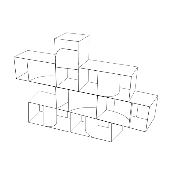 Las curvas cóncavas y convexas se alternan y generan secuencias siempre diferentes de sólidos y vacíos dando lugar a elementos dinámicos y escultóricos que amueblan libremente el espacio doméstico.
