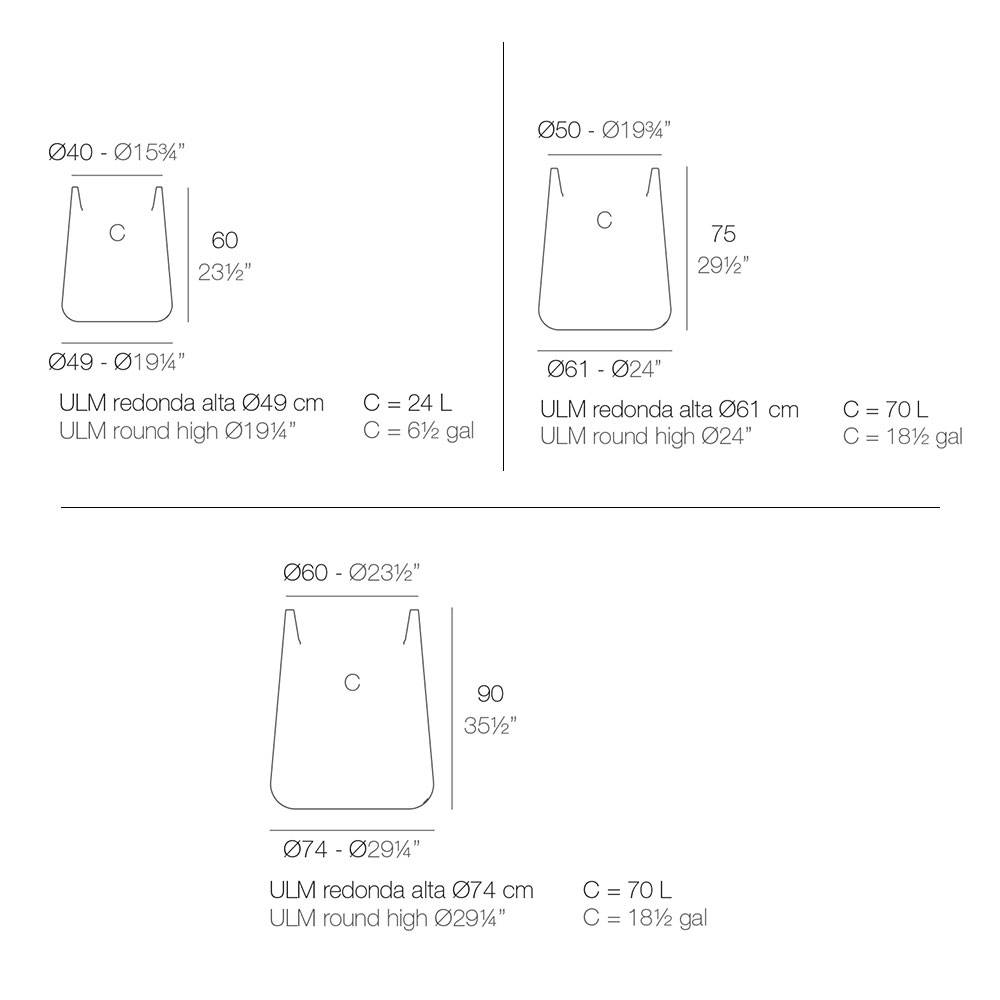 Macetero Ulm Redonda Alta de la colección de muebles Ulm, diseñada por Ramón Esteve para Vondom, está planteada como un nuevo básico con todo su carácter racionalista y universal. Una colección modular funcional que armoniza ergonomía, diseño y tecnología basándose en volúmenes básicos de cubo, prisma y esfera.